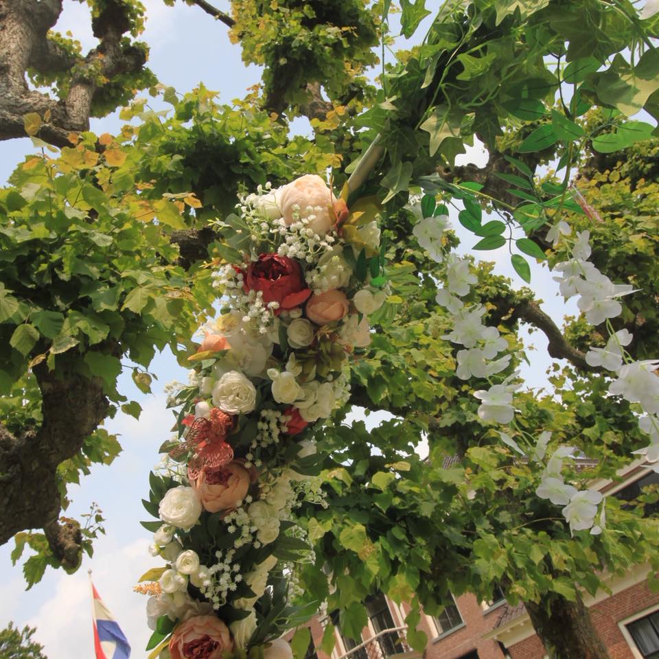Of het nu gaat om een intieme ceremonie in de buitenlucht, een feestelijke entree bij de locatie of een indrukwekkende backdrop voor foto’s: wij denken graag mee en zorgen voor een decoratie die de beleving versterkt, zonder te overheersen.